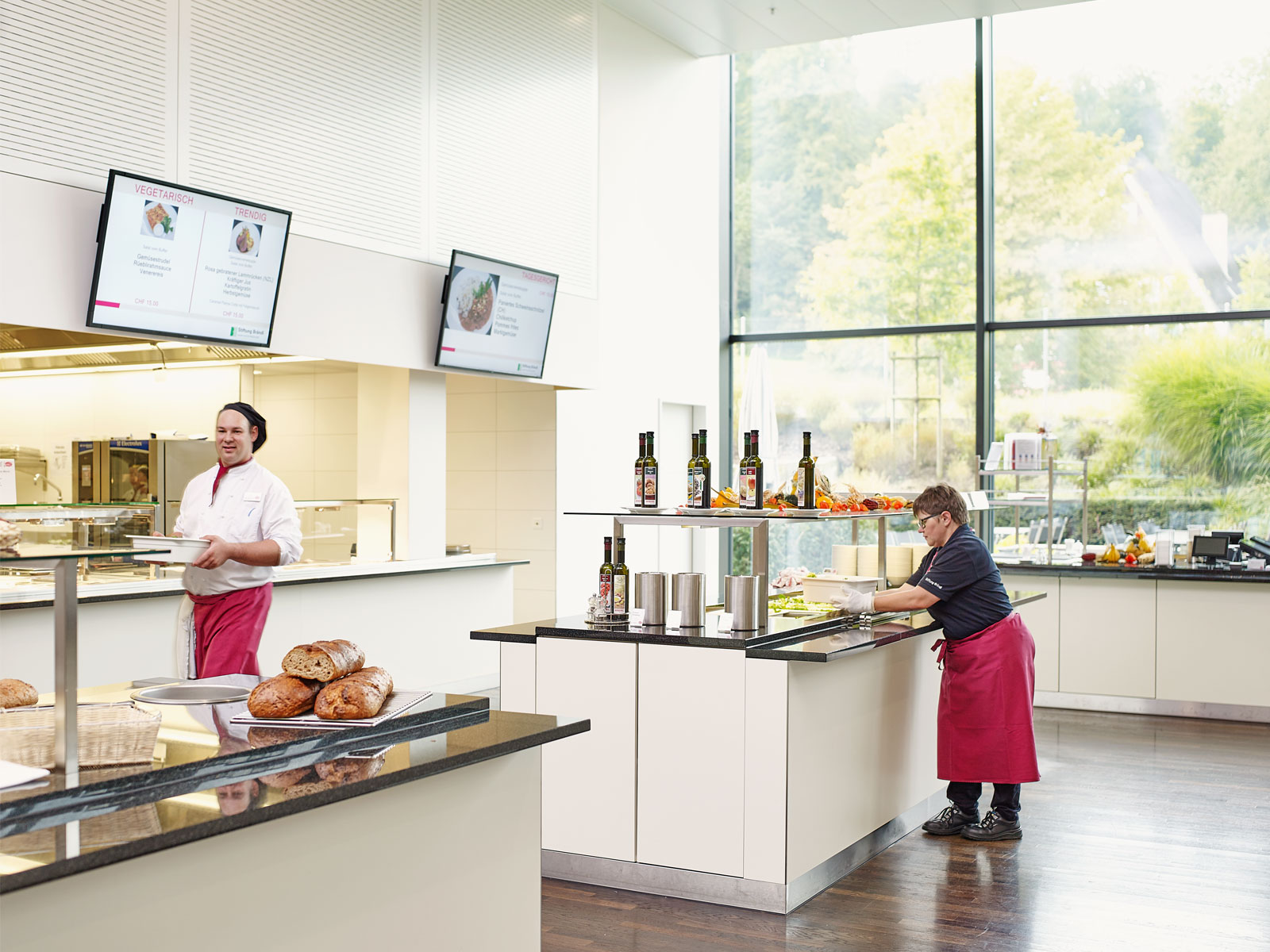 Für die Gastronomie sind die Mitarbeitenden von Brändi für Sie da. Das Restaurant ist von 8.00 bis 16.00 Uhr geöffnet und bietet in den Pausenzeiten ein Znüni- und Zvieriangebot an.