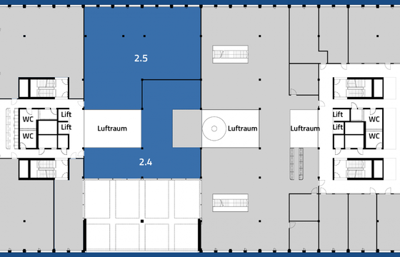 Im 2. Obergeschoss sind Büroräume in verschiedenen Grössen zur Dauermiete verfügbar.