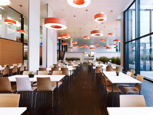 Lassen Sie Ihren Mantel hängen. Das Restaurant Bison mit reichhaltigem Angebot an Mittagmenüs und Salatbuffet befindet sich direkt unter Ihrem Büro. Sie geniessen Ihren Lunch im stilvollen Interieur und den Espresso auf der ruhigen Sonnenterrasse mit angrenzender Parkanlage. Oder offerieren Sie an Ihrer Konferenz ein anregendes Pausenbuffet, arrangiert und betreut vom Restaurant Bison.